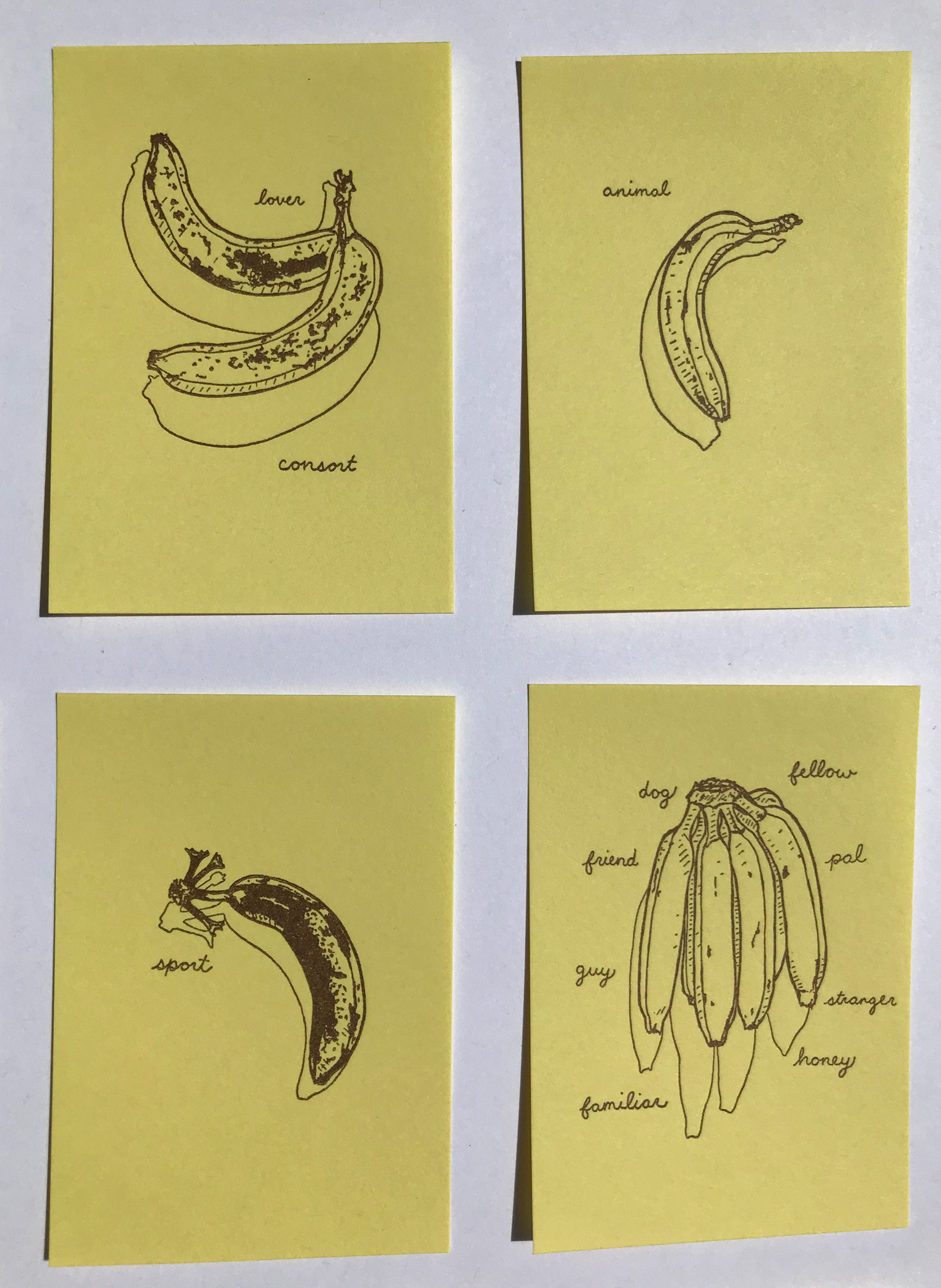 Letterpress printed artist book, dedicated to all the bananas in my life. Bananas of Affection cards are meant to be given to bananas of your affection.